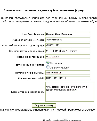 Для опытных вебмастеров, владельцев сайтов, а также для компаний и частных лиц, имеющих опыт в привлечении интернет-трафика мы предлагаем взаимовыгодное сотрудничество по организации собственного портала игр Live-games.